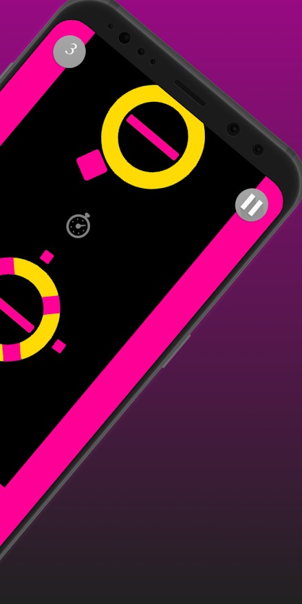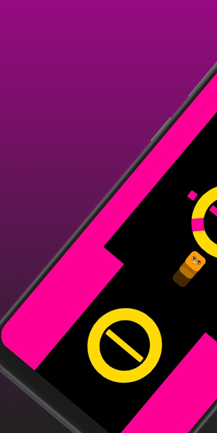 2、只能穿过周围不断旋转的圆环的黄色区域,不能碰到红色区域以及各种红色的障碍物;