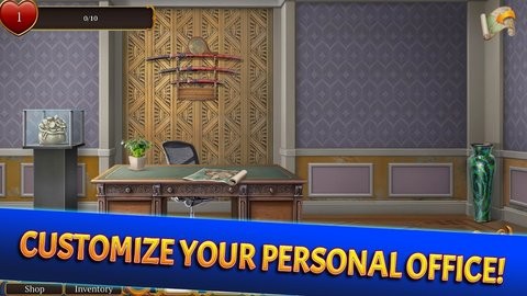 2、在美丽的城市旅行,寻找赃物,用家具和奖杯装饰我们的私人办公室;