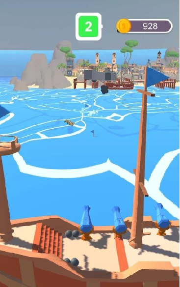 3.比拼一下谁的大炮和船更厉害,打败敌人收取宝藏,快乐的海盗生活开始。