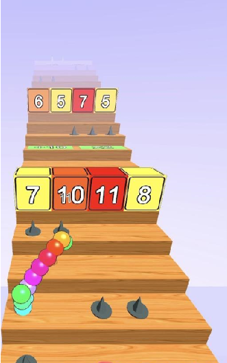 2、球球爬楼梯手游里,玩家在闯关的时候要操作合适,避免尖刺,不要减少了球的数量;