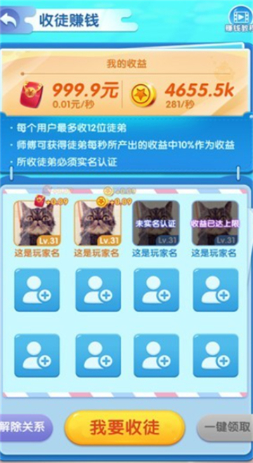 1、用户可通过不断的进行手游来获取更多稀有的鱼苗品类,获取更高的收益。