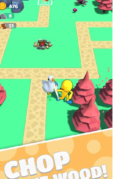 1、摇杆操控小人移动,收集好所需要的东西后,站到将要建筑的地方就会自动进行建造,