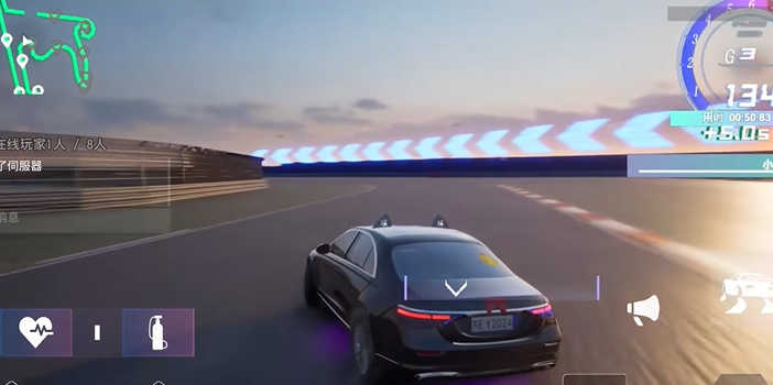 4、游戏驾驶页面左右两侧可以看到赛道路线,以及驾驶速度等参数。