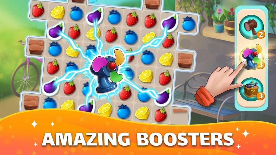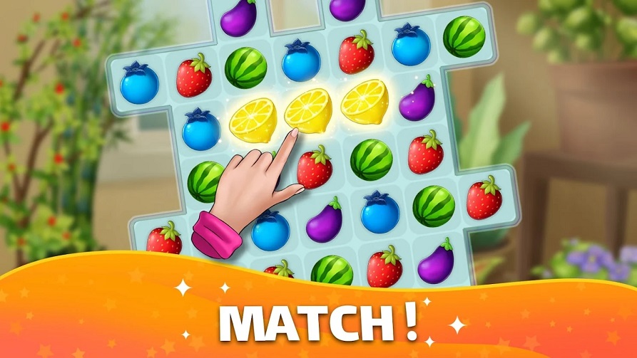 1、交换和匹配水果,获得星星,并根据您的风格改造您的家。让你欢乐畅享到底哦。