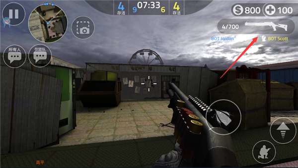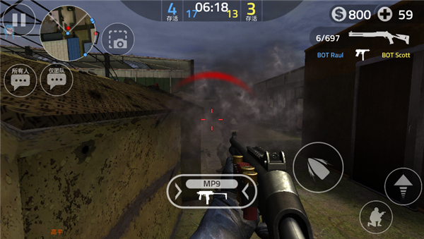 8、眼睛别忘了看小地图,敌人如果没有装备消声器开枪的话会在小地图上作为红点出现,且会持续一段时间,红点还会跟着敌人的位置有所移动,哪怕敌人已经停止射击。