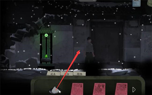 28、留意图里的石塔,要是场景里出现鬼怪,就必须佩戴【弥鼓诺】面具(要关注面具的冷却时间),接着连续点击把石塔的绿灯点亮,如此便能在场景中短暂地驱逐鬼怪。场景中相似的房子能够临时躲避鬼怪,房子里的符文不再闪烁时,就意味着暂时处于安全状态。