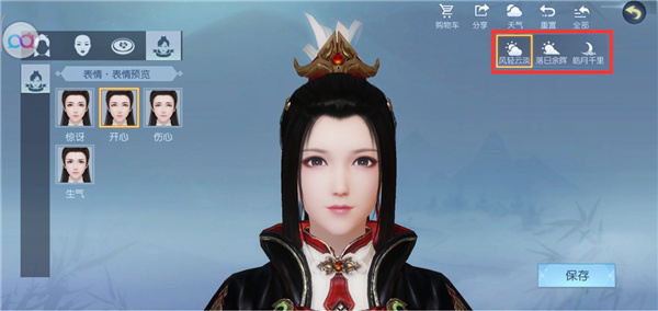 游戏内目前共预设了四种可选表情,分别是吃惊、微笑、忧伤、愤怒,玩家可根据自己对捏脸最终效果的需求进行选择(亦可不选)。在捏脸操作全部完成后,点击右下角保存按钮即可。