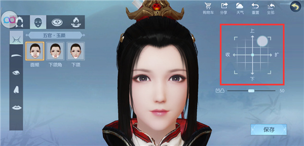 点击界面左上角的五官页签,并选择界面左侧需要进行调整的部位,按住并拖动右侧坐标轴内的小圆盘,调整对应部位的轮廓,并可对所选部位的轮廓进行凹凸、大小等更精细化修饰,DIY专属个性主角。