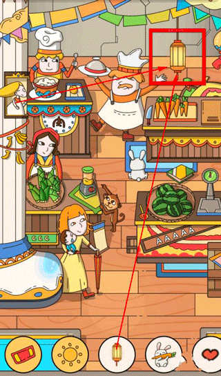 6、长按窗户出现女孩,点击女孩拿到灯泡,把灯泡装到灯笼中。