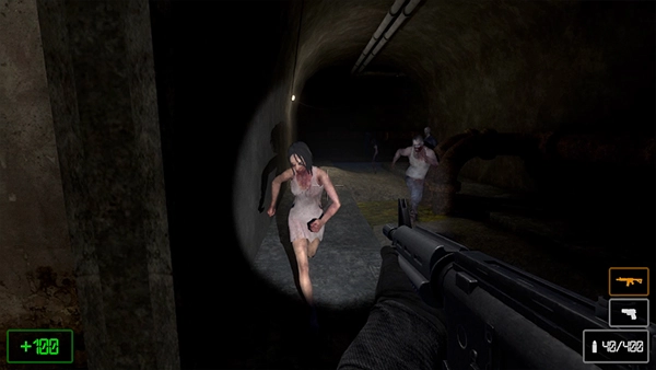 6、在下楼看到僵尸的时候,我们只需要使用枪械守住楼梯口即可;