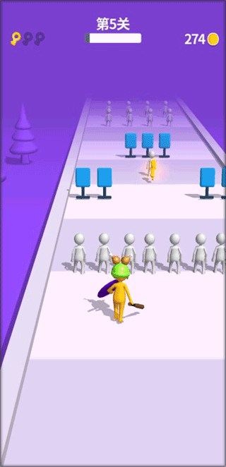 彩球砰砰砰手机版是一款充满趣味的休闲益智闯关类游戏。在这个游戏里,玩家要操控自己的角色开启闯关之旅。角色会自动向前行进,玩家仅需通过左右滑动屏幕,就能让小人实现左右移动,以此躲避途中的障碍物。同时,玩家还要尽可能地去撞击赛道上白色的小人,这些被撞击的小人会成为玩家的队友,跟在玩家身后。当抵达终点的时候,会有一群敌人现身,此时玩家需要带领队友与敌人展开斗争,拥有的队友数量越多,就越容易取得胜利。