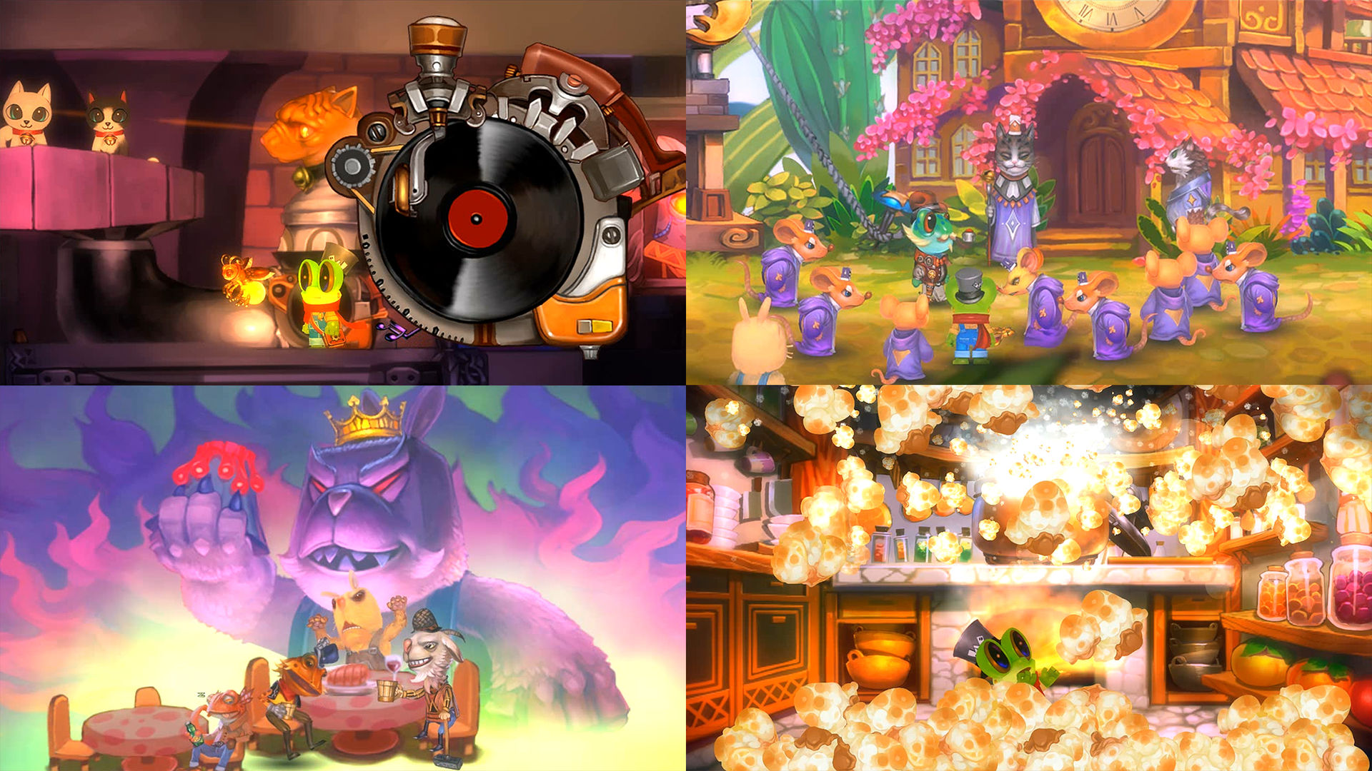 美术风格独树一帜,手绘童话版画风呈现了一个由人类日常可见的小物件构成的微缩世界,兼具蒸汽朋克风味和美国西部拓荒时期的辽阔感。