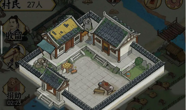 2、每隔一段时间就会有村民来访,点击【收留】选项,