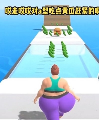 一边吃掉途中的食物,有汉堡和黄瓜,吃掉汉堡就会不断变胖,吃掉黄瓜就可以迅速变瘦,魔性的玩法;