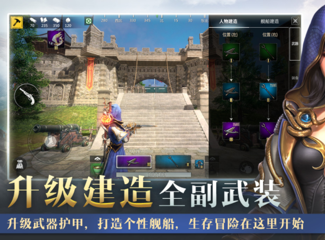 画面很真实,船头船侧啥的都有炮,船,武器,防具都是采用搜寻物资升级的方式,船打船的话是有点费力,船开动较慢,而且打人的时候船特别容易撞到障碍物。
