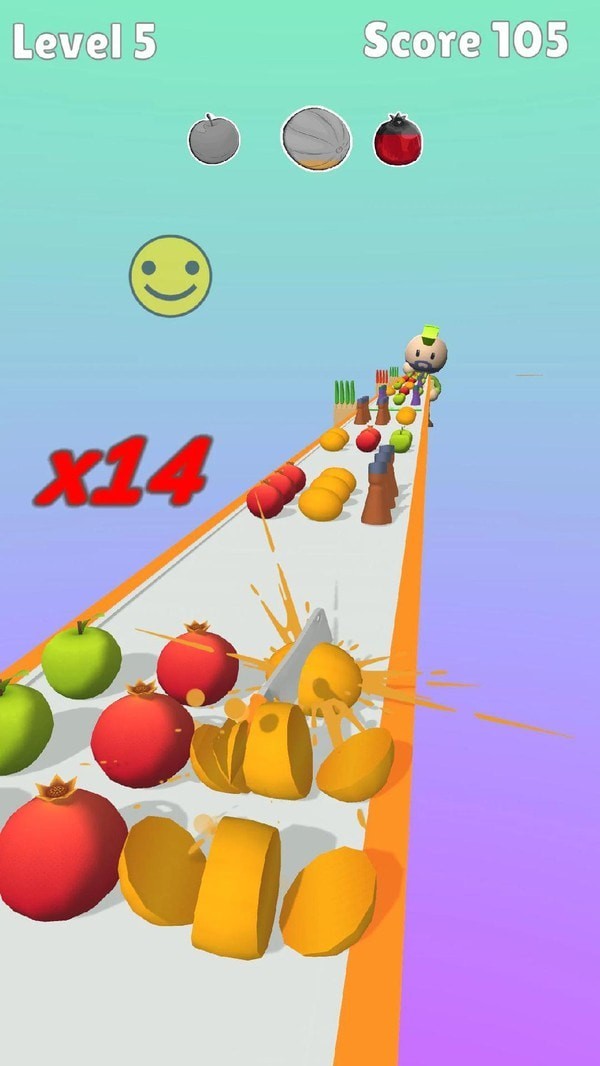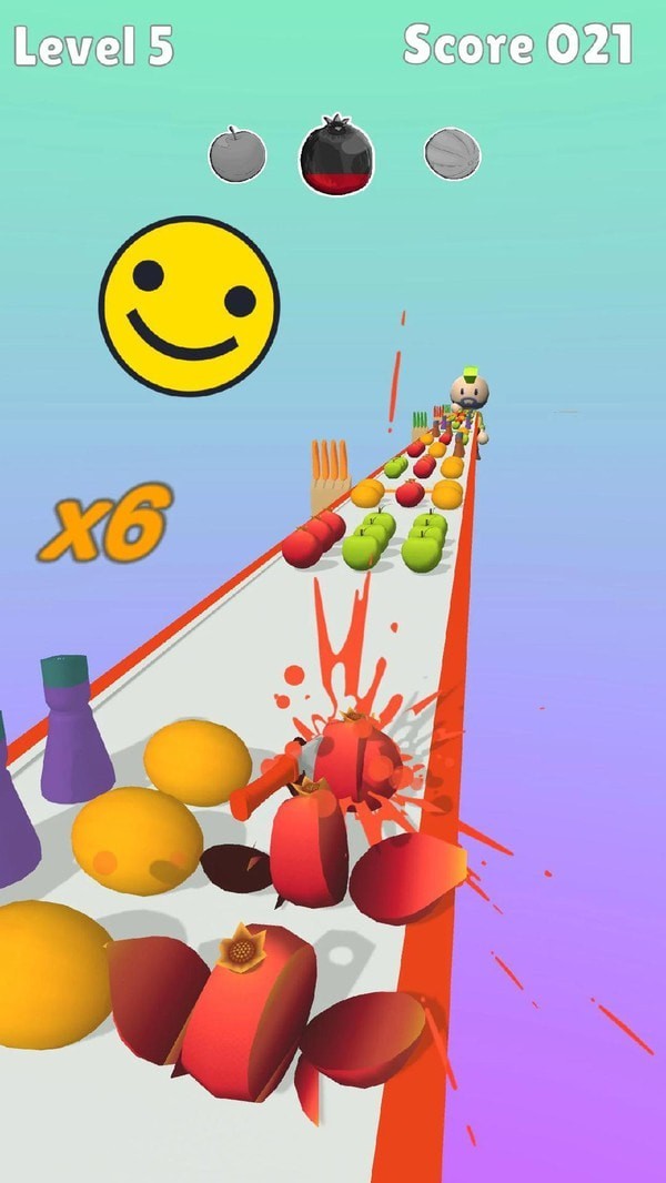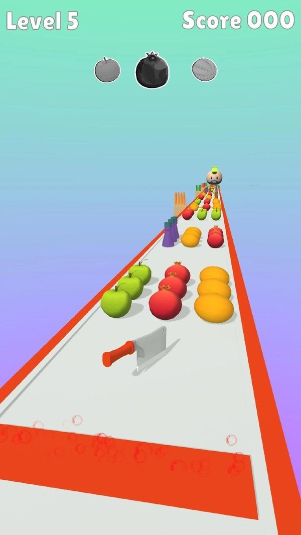 1、各种各样的水果以及食物都可以直接切成片,只要切得份数多,那么奖励自然也高。