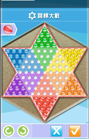 跳棋的是一种可以由二至六人同时进行的棋,棋盘为六角星形,棋子分为六种颜色,每种颜色10或15枚棋子, 一款老少皆宜,华丽流畅的跳棋手游。 每一位用户占一个角,拥有一种颜色的棋子。规则非常简单:只要把你的三角形上的弹子全部都移动到对面的三角形上就算赢;移动时可以单步,跳跃一个或多个弹子。