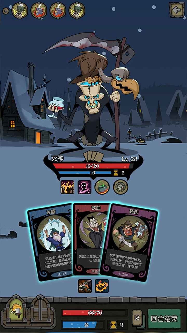 3.手游中共有6中职业(最中加入了狼人),冒险过程中的随机事件让每次游玩都有全新的尝试,玩法比较考验用户的策略,画面和音乐都非常精良!