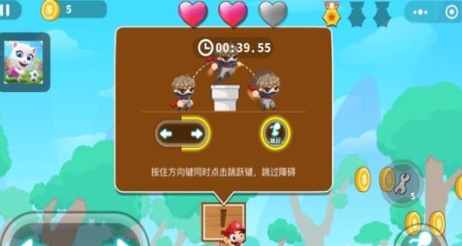 2.在每一次的闯关中有三次生命,掉落悬崖或撞到动物,都会失去一次生命;