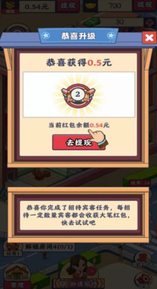 幸福招待所作为一款复古类的招待所经营手游,在这里有很多的顾客等待着你去服务,服务顾客的同时还可以去完成任务,获得红包的奖励,超多不同的房间布局你可以去自由的设置,也可以去随机生成,简单的操作尝试,快来感受经营模拟吧。