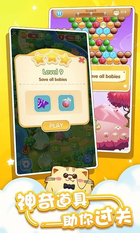 2.传统模式下,和其他泡泡手游基本都是差不多的,相同颜色的三个泡泡即可消除掉,
