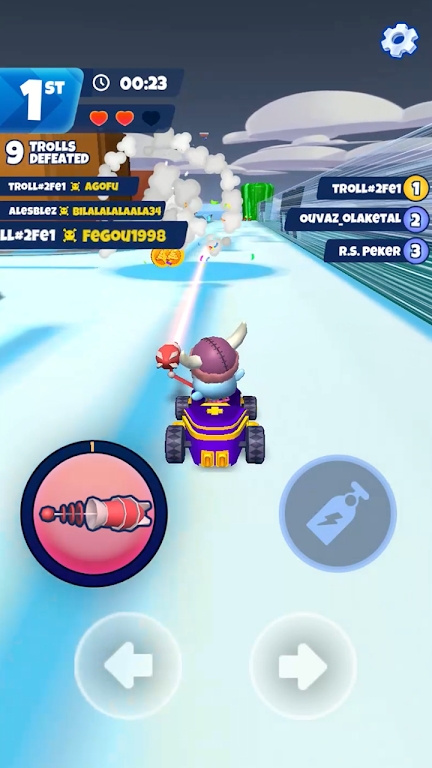 巨魔卡丁车(TFQ Kart Wars)在这个新的快节奏的3D手游中,你将驾驶疯狂的卡车,并在手游里面与邪恶的巨魔竞争。与虚拟朋友赛跑,并在排位中获得高排名,使用武器,如火箭推进器!只要你把手放在方向盘上,汽车的轰鸣就会响起!