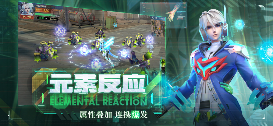 2、驾驭机甲、掌控异能,多技能连招即时战斗,组团杀BOSS集时装。