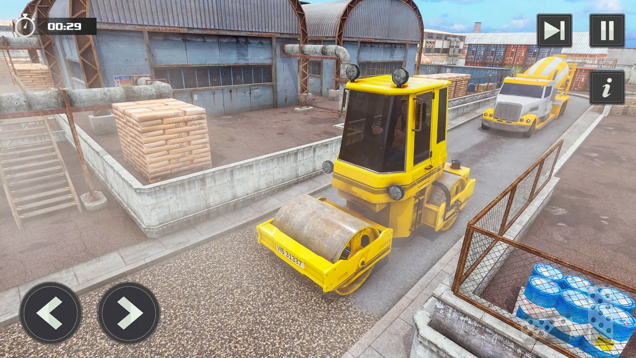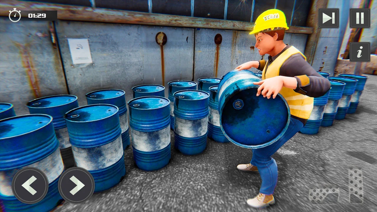 3、例如,使用自卸车将路石从一个地方扔到另一个地方,或使用叉车从仓库中举起木炭桶,然后将其放在此起重机挖掘机模拟器中的施工现场。