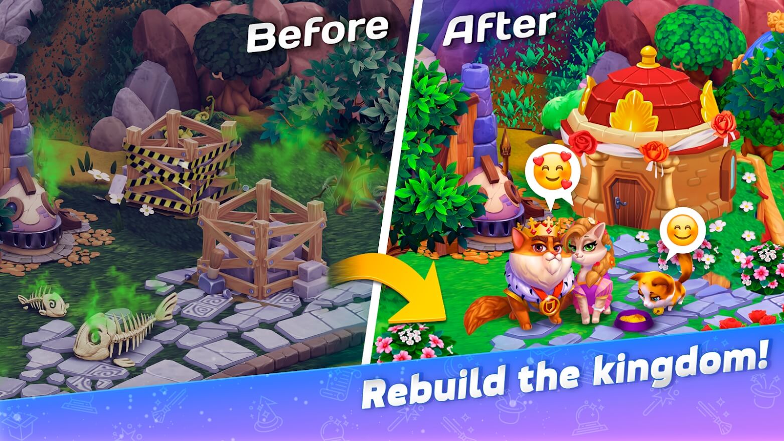 梦幻猫魔法冒险手游(Dream cats: Magic Adventure):你知道猫有自己的魔法王国,充满谜题和宝藏吗?不久前,卡特兰的魔法猫在他们由最聪明的珀尔林统治的王国中平静地生活着,然后,邪恶的雾气来了,覆盖了卡特兰,将其居民困在了令人讨厌的地牢现在,当魔法猫失踪,他们的世界不再神奇时,魔法猫需要你的帮助,将朋友带回并恢复他们心爱的家园。