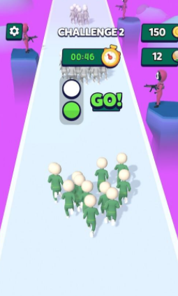 不过玩法很简单,你只需要在绿灯亮起来的时候向前跑,并收集更多的小人以强大自己的军团,红灯亮起来的时候,要停下来以免被枪击,