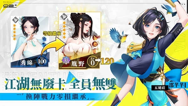 在这江湖之中,不存在无用的卡牌,只要是你钟爱的,那便是最强的存在!无需畏惧卡牌的品阶高低,所有卡牌皆能晋升至绝世之境!等级与装备可一键继承,更换卡牌轻松便捷,资源毫无浪费。在这里,你能够尽情搭配出千变万化的阵容,每一张卡牌都能成为主力!