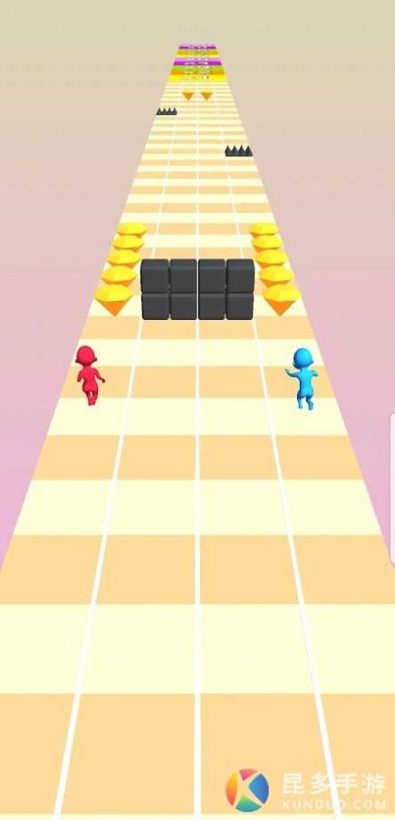 1、采用竖屏跑酷模式,同时控制男孩和女孩为了爱情向前冲刺,不但要跑到终点。