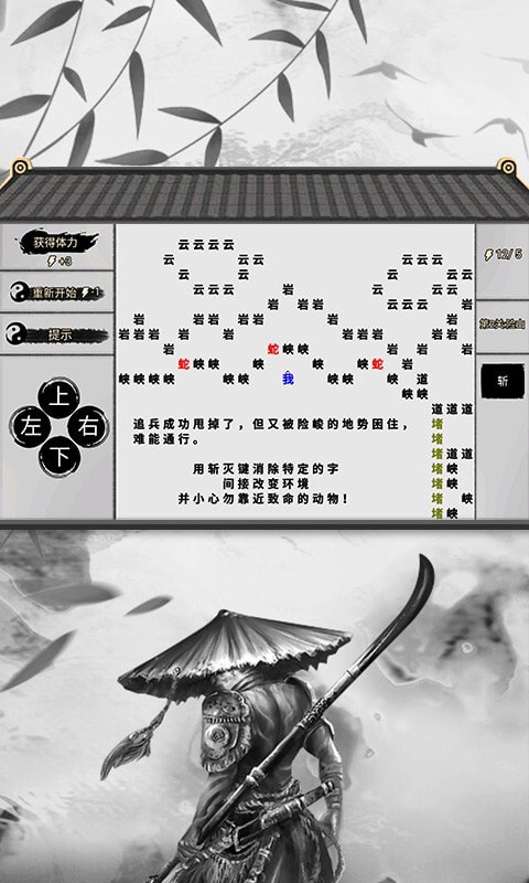 手游的解密玩法并不是说非常的出色,以纯文字来构建出全局画面,比如局内的墙壁就是一排“墙”字。