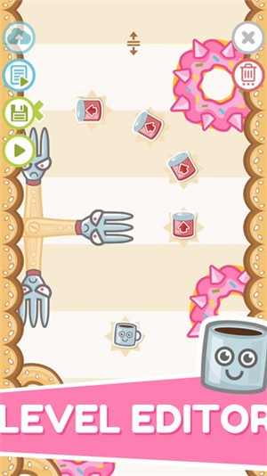 用户可以通过各种道具来装扮你的烤面包机。还可以自己设计手游关卡,并通过网络分享给其他用户。