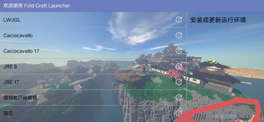 1、首先需要安装游戏,第一次打开游戏会进入如下界面,点击【安装/更新】即可