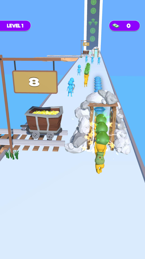收集或堆叠工人,尽可能获得最佳数字!试着和工人一起通过大门,增加他们携带物品的价值!但请记住,风险也会增加。