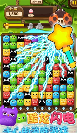 一款可以使玩家们利用业余时间玩消消乐赚钱的手游,消消乐的玩法大家都非常的熟悉,只要将三个相同的元素连成一条直线就可以消除得分,而在该游戏当中这种简单的玩法也可以让你获得红包,每次消除以后就可以累积你的红包,消除的越多累积的红包就越大。