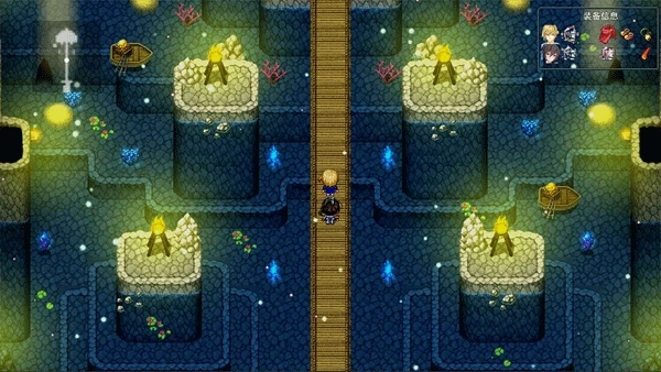 回到左上角进入内室,迎面可以看到金色的女神像。【女神像可以选择祭拜,恢复所有HP,MP。选择试炼,进行多场战斗,可提升角色经验,等级,当野外无怪可杀的情况下,只能依靠女神像来进行升级。】