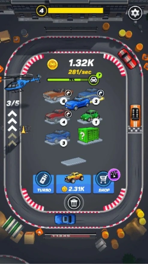 一款汽车合并手游,用户必须在其中生成金币、购买汽车并合并它们以获得更好的车辆。准备好你的车库,购买和收集汽车,然后将它们两两合并以获得一个新的和改进的模型!你的车准备好了吗?每次通过终点线时,将他们移动到赛道并获得硬币。获得最令人惊叹的车辆,并通过这个令人上瘾的手游探索您可以达到的水平!