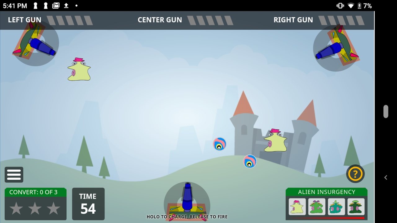地球被各种奇怪的外星人淹没。在这个激动人心的射击街机手游中,使用十种不同类型的枪(每把枪的功率都比前者强大)向60种外星人射击能量球。注意仅针对当前任务中的目标。