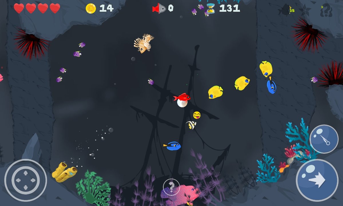 并非所有海中的鱼都很友好。这是一个鱼吃鱼的世界!你必须避免珊瑚礁中的危险,例如可以伤害你的大型鱼类,尖尖的海胆,刺人的水母和饥饿的鲨鱼 - 谁知道,它们也可能是巨齿鲨的宝宝,所以要小心!