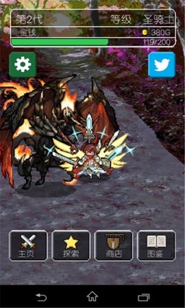 本手游最大的特色,就是收集道具让自家勇者进化。为了达到这个目标,开始手游后勇者就会自动去攻击怪兽,其间不需要用户做任何操作,直接放置play就可以获得经验。但如果在放置期间脸黑碰到了boss,勇者就会领便当,然后转生成第二、第三、第N个勇者,继续冒险。