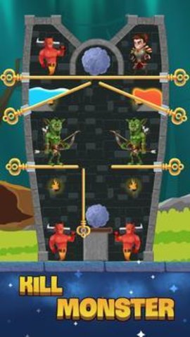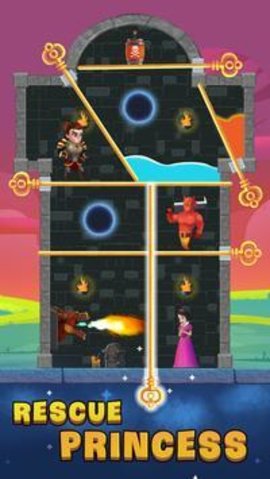 普通模式:拉动别针让英雄完成任务:拯救公主。
