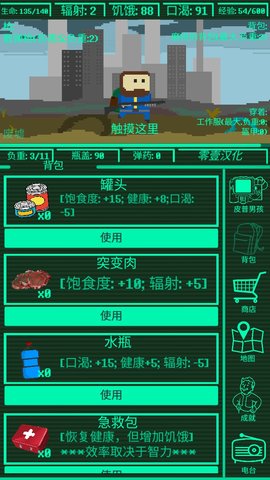口袋辐射作为一款的冒险生存手游,在游戏里玩家在游戏里面将要帮助一个中年男子生存于这个被辐射所笼罩的世界下,你将沿路边走边寻找吃的,注意你的身体健康指标,只有不靠近危险值你才能一直活下去。感兴趣的用户快来点击下载手游吧!