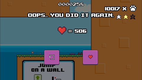 山姆猫冒险奔跑者作为一款以猫咪为主角的冒险闯关小游戏。在游戏里面,在游戏里玩家将控制猫猫进行冒险,你要收集关卡内的星星,一次次的完美跳跃是你通关的致胜法宝,简单的像素画风仿佛把我们带回了童年的街机时光。喜欢的用户赶紧下载吧。