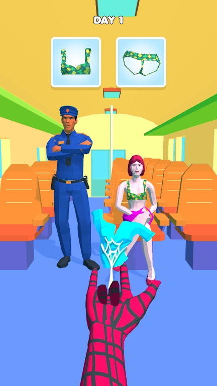 3、扮演邪恶的蜘蛛小偷,游戏中用户利用他的射丝技能偷内衣、食物并在街上拖钓人。