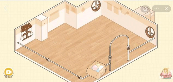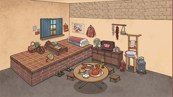 1、这是回到了80年代吧,好有感觉的小房间,我们需要点击下方的箱子,拿出家具