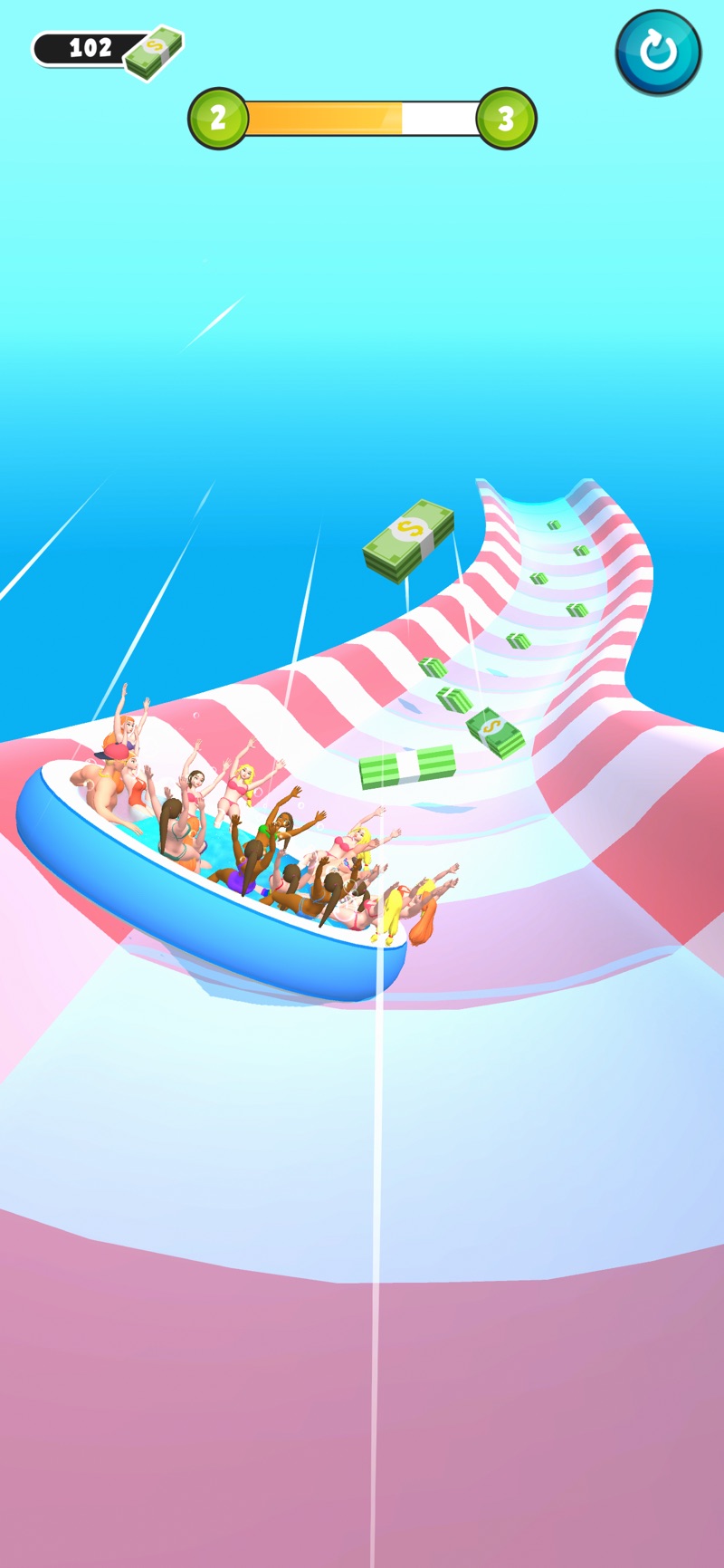 Hottub Run手游让你与众多美女一起尝试漂流的乐趣,在游戏里面你们将被放到一个圆形的游泳圈内,做为把舵的男人,你想要控制好方向,躲避掉各种障碍及陷阱。我们只需要一路向钱就能不断变强,最快通过的用户将有机会获得全场第一的好成绩!