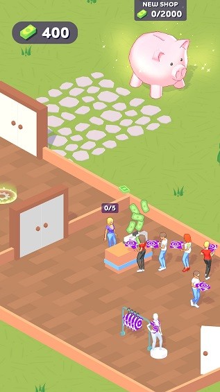 这款游戏是从最基础的建造机器开始的,建造制作颜色的机器、染色机器;收集颜料漂染衣服,做出拥有好看颜色的衣服;放到门店的衣架上售卖,在游戏里玩家还要充当收银的角色,站到前台收银。