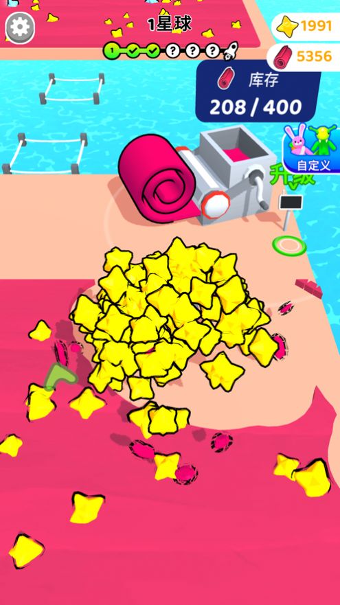 我超能卷手游作为一款十分爽快的闯关小游戏。拿起巨型铲子将地上的五颜六色棉花给卷起来,我们的任务就是要不停的卷毯子,在卷毯子的过程中我们还能够发现隐藏在棉花之下的各种星星道具,去收集这些道具就能够获得更多的分数加成哦,当你看着一摞摞的毯子应该心中会有浓浓的成就感,快来加入这次的奇妙挑战吧!